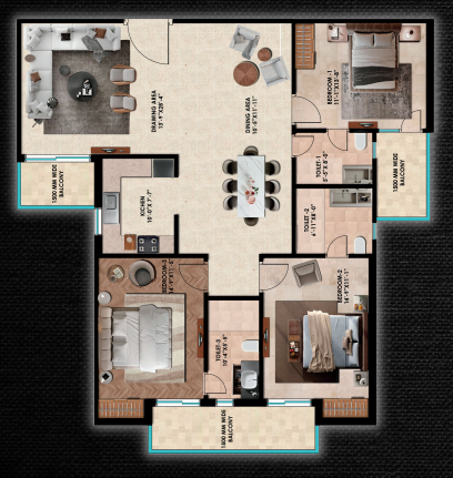 3 BHK | 1900 Sq.ft. | On Request | On Request | On Request | |