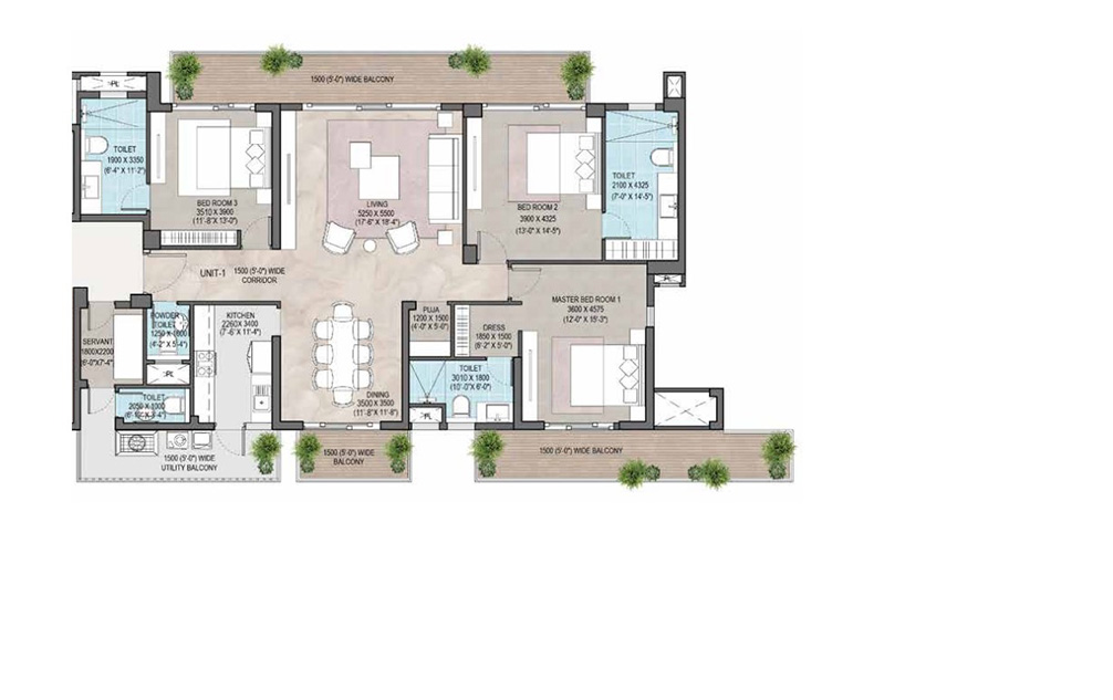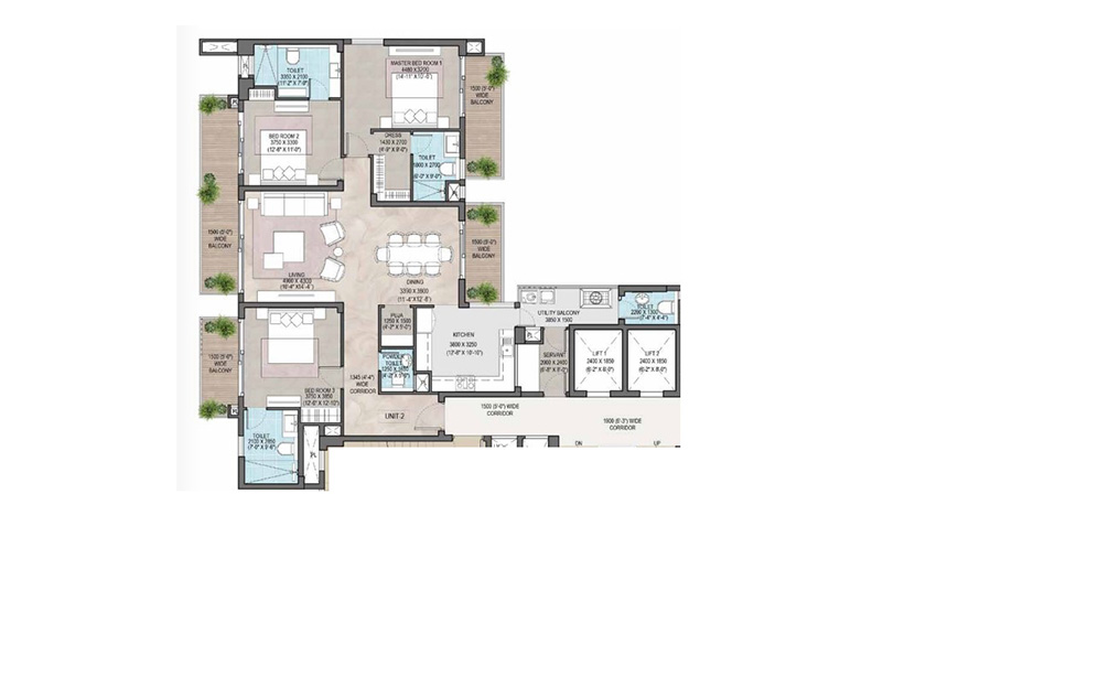 3 BHK | 1547 Sq.ft. | On Request | On Request | On Request |