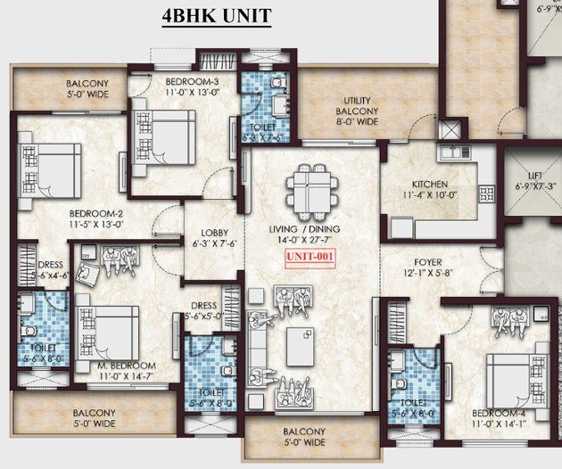 4.5 BHK | 1705 Sq.ft. | On Request | On Request | On Request |