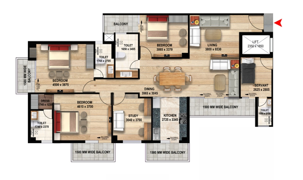 4.5 BHK | 1961 Sq.ft. | On Request | On Request | On Request | |