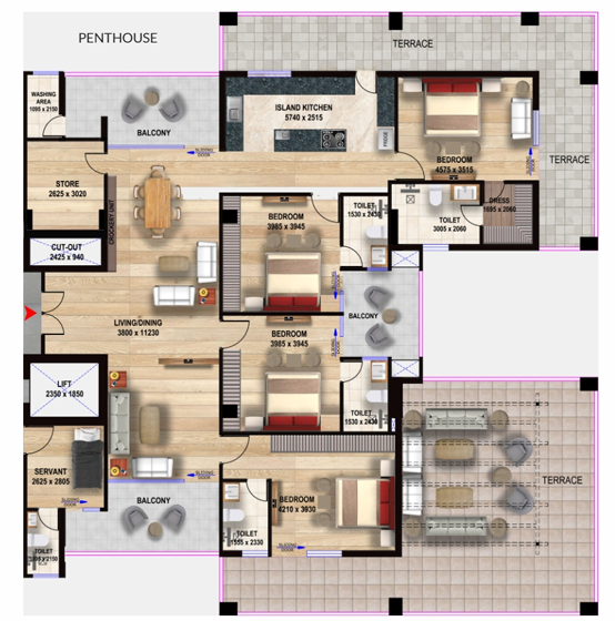 Penthouse | 2013 Sq.ft. | On Request | On Request | On Request | |