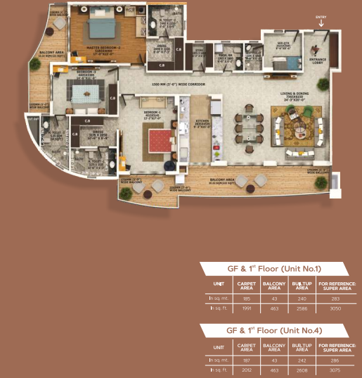 4 BHK | 2454 Sq.ft. | On Request | On Request | On Request | |