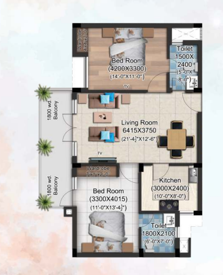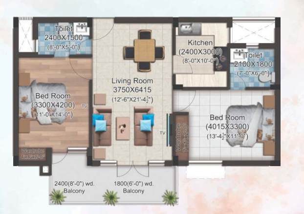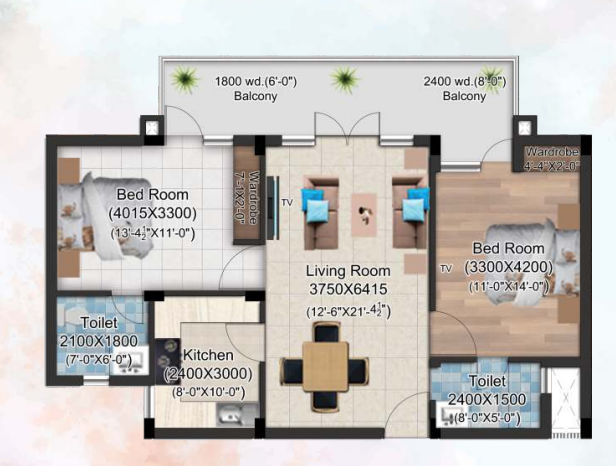 2 BHK | 1210 Sq.ft. | On Request | On Request | On Request | |