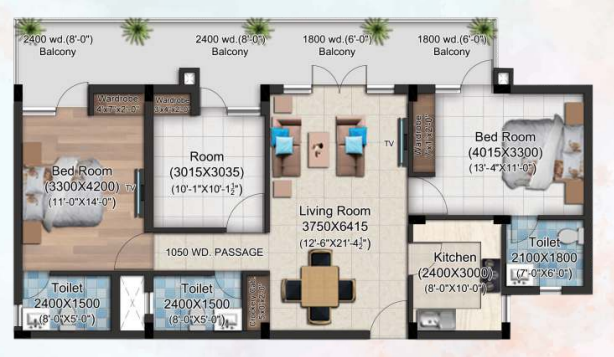 3 BHK | 1581 Sq.ft. | On Request | On Request | On Request |